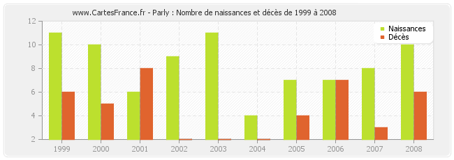 Parly : naissances et décès de 1999 à 2008