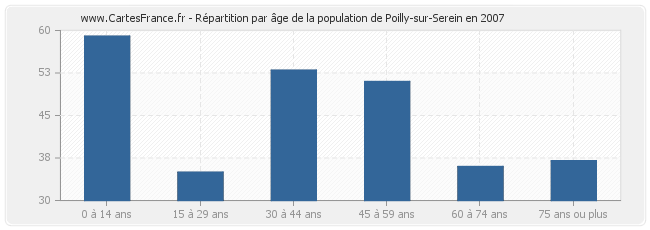 - Population de Poilly-sur-Serein de 45 à 59 ans : 51 habitants