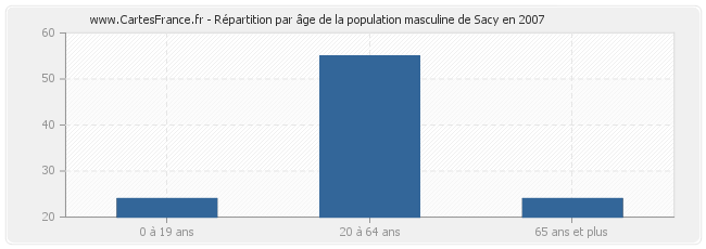 - Hommes de 20 à 64 ans habitant Sacy : 55