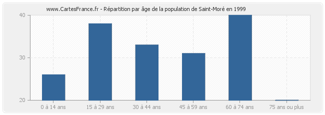 Répartition de la population de Saint-Moré par âge en 1999 :