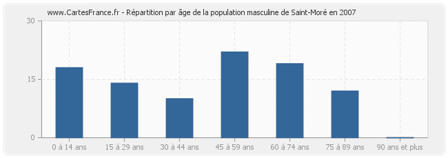 Répartition de la population masculine de Saint-Moré par âge en 2007 :