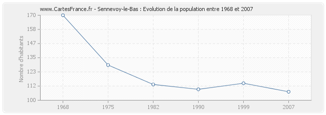 La population de Sennevoy-le-Bas était de 107 habitants en 2007, 114 habitants en 1999, 109 habitants en 1990, 113 habitants en 1982, 129 habitants en 1975 et 170 habitants en 1968.