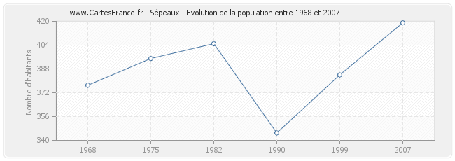 La population de Sépeaux était de 419 habitants en 2007, 384 habitants en 1999, 345 habitants en 1990, 405 habitants en 1982, 395 habitants en 1975 et 377 habitants en 1968.
