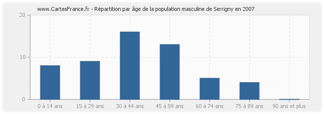 Répartition de la population masculine de Serrigny par âge en 2007 :