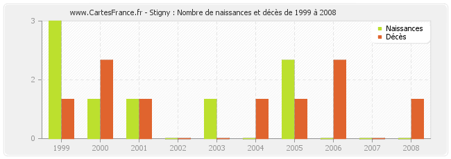 La population de Stigny était de 129 habitants en 2007, 117 habitants en 1999, 83 habitants en 1990, 85 habitants en 1982, 116 habitants en 1975 et 160 habitants en 1968.