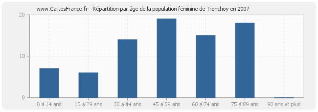 Répartition de la population féminine de Tronchoy par âge en 2007 :