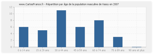 - Hommes de 30 à 44 ans habitant Vassy : 11