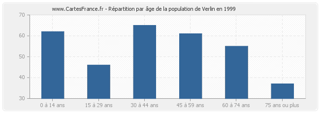 - Population de Verlin de 30 à 44 ans : 65 habitants