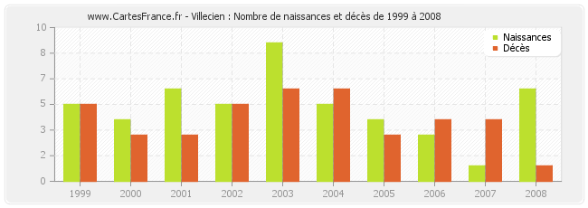 Villecien : évolution des naissances et décès de 1968 à 2007
