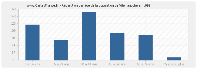 - Population de Villemanoche de 30 à 44 ans : 153 habitants