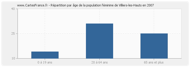 Répartition de la population féminine de Villiers-les-Hauts par âge en 2007 :