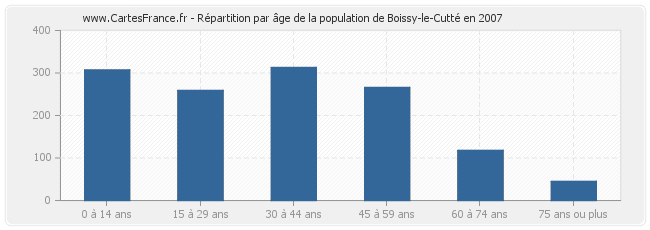 - Population de Boissy-le-Cutté de 0 à 14 ans : 313 habitants