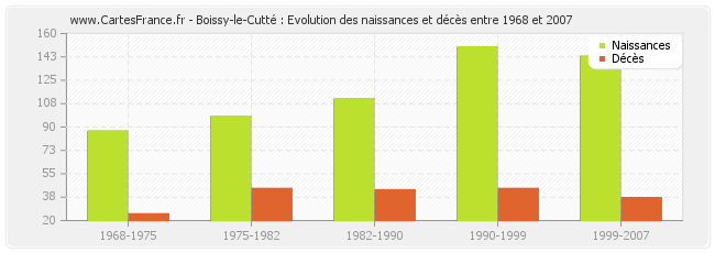 Boissy-le-Cutté : évolution des naissances et décès de 1968 à 2007