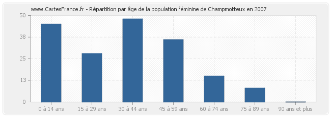 Répartition de la population féminine de Champmotteux par âge en 2007 :