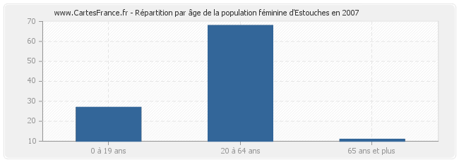 Répartition de la population féminine d'Estouches par âge en 2007 :
