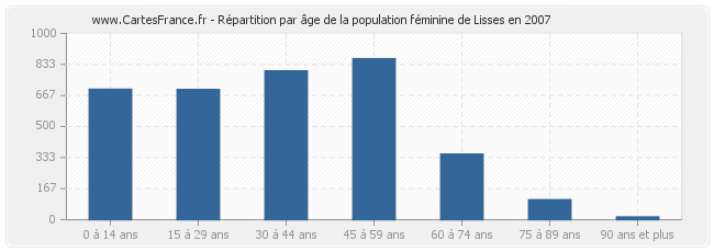 Répartition de la population féminine de Lisses par âge en 2007 :