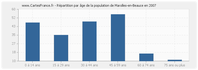 - Population de Marolles-en-Beauce de 45 à 59 ans : 55 habitants