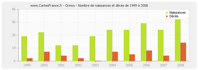 - Ormoy en 2008 : 32 naissances et 14 décès