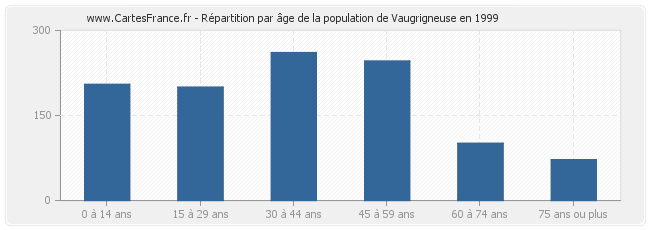 Répartition de la population de Vaugrigneuse par âge en 1999 :