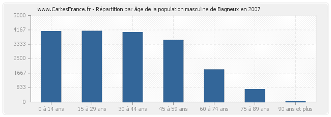 Répartition de la population masculine de Bagneux par âge en 2007 :