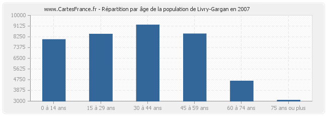 Répartition de la population de Livry-Gargan par âge en 2007 :