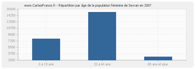 Répartition de la population féminine de Sevran par âge en 2007 :