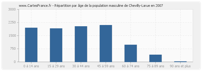 Répartition de la population masculine de Chevilly-Larue par âge en 2007 :