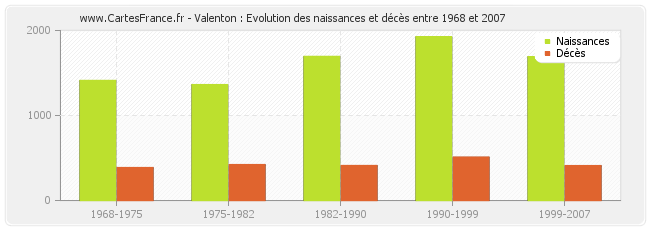 Valenton : évolution des naissances et décès de 1968 à 2007