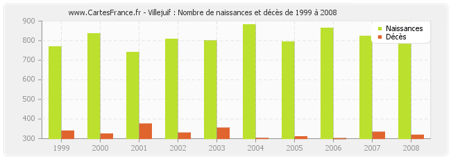 - Villejuif en 2008 : 889 naissances et 318 décès