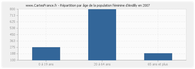 Répartition de la population féminine d'Andilly par âge en 2007 :
