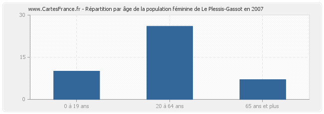Répartition de la population féminine de Le Plessis-Gassot par âge en 2007 :