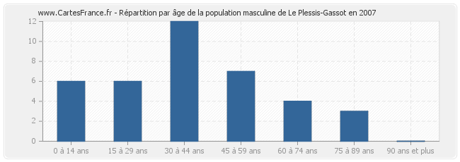 Répartition de la population masculine de Le Plessis-Gassot par âge en 2007 :
