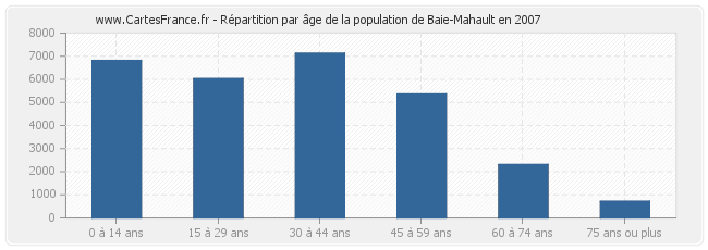 Répartition de la population de Baie-Mahault par âge en 2007 :