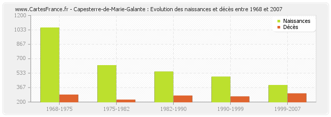 Capesterre-de-Marie-Galante : évolution des naissances et décès de 1968 à 2007
