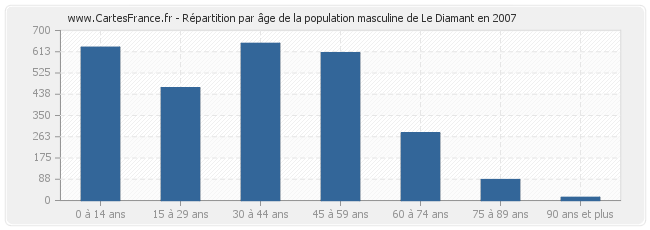 - Hommes de 0 à 14 ans habitant Le Diamant : 631