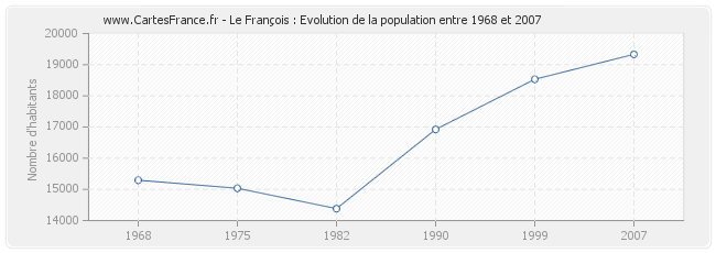 - Population de Le François en 2007 : 19 333 habitants