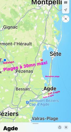 Situé à Adissan, l’hébergement Ma Vie Là LOLY offre une vue sur le jardin. Il propose un service de prêt de vélos, une piscine extérieure ouverte en saison, une terrasse et une connexion Wi-Fi gratuite. Cette villa comprend une piscine privée, un jardin et un parking privé gratuit. Cette villa avec climatisation se compose de 3 chambres, d'un salon, d'une cuisine entièrement équipée avec un réfrigérateur et une machine à café, ainsi que de 1 salle de bains avec une douche et un bain à remous. Des serviettes et du linge de lit sont disponibles. L’établissement Ma Vie Là LOLY dispose d’un bain à remous. L'aéroport le plus proche (Aéroport de Béziers - Cap d'Agde) est à 40 km. |