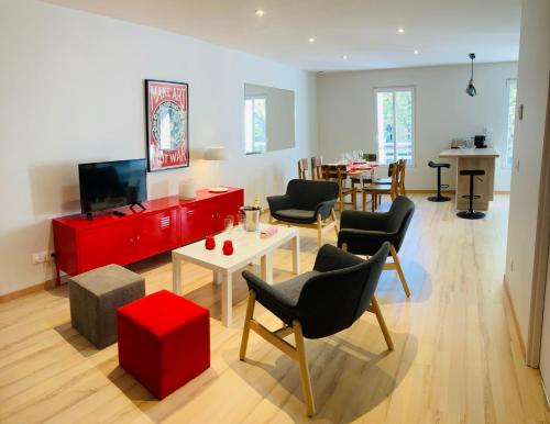 Situé à Agde, l’hébergement Appartement neuf, centre ville d'Agde met à votre disposition une connexion Wi-Fi gratuite et offre une vue sur la ville. Cet appartement est dans une région où vous pourrez pratiquer des activités telles que la randonnée, la pêche et le vélo. Cet appartement comporte 3 chambres, une cuisine avec un réfrigérateur et un lave-vaisselle, ainsi que 2 salles de bains avec une douche, un sèche-cheveux et un lave-linge. Des serviettes et du linge de lit sont à votre disposition. L'aéroport le plus proche (Aéroport de Béziers - Cap d'Agde) est à 10 km. |