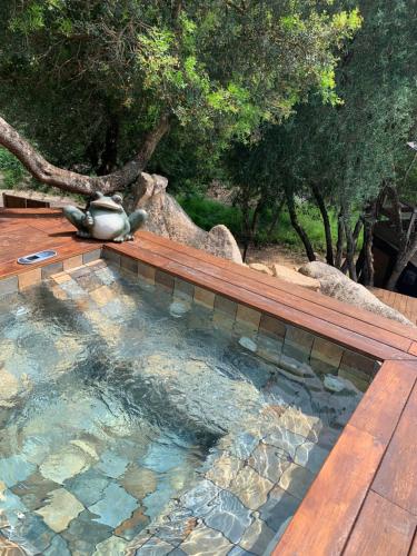 L’établissement Chambre d'hôtes A Vadina Porticcio se trouve à Porticcio, à 900 mètres de ce lieu d’intérêt : Plage d'Agosta. Il propose une piscine extérieure ouverte en saison, un jardin, un barbecue et un parking privé gratuit. Il se situe à respectivement 20 km, 33 km et 33 km de : Port d'Ajaccio, Tour de la Parata et Îles Sanguinaires. Cette maison d'hôtes comprend un bain à remous, une cuisine commune et une connexion Wi-Fi gratuite dans l’ensemble de ses locaux. Les hébergements sont dotés de la climatisation, d’une armoire, d’une machine à café, d’un réfrigérateur, d’un lave-vaisselle, d’un coffre-fort, d’une télévision à écran plat et d’une terrasse. Ils comprennent également une salle de bains privative pourvue d’une douche. Vous bénéficierez d'une bouilloire. Certains hébergements comprennent également une kitchenette équipée d’un micro-ondes. Des serviettes et du linge de lit sont fournis. L’établissement Chambre d'hôtes A Vadina Porticcio dispose d’un hammam. Vous pourrez jouer au ping-pong sur place. Vous séjournerez à respectivement 45 km et 21 km de ces lieux d’intérêt : Port de Propriano et Mairie d'Ajaccio. L'aéroport le plus proche (Aéroport d'Ajaccio - Napoléon Bonaparte) est à 15 km. |
