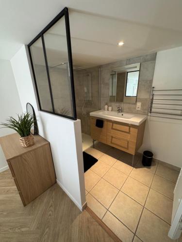 Appartement 1 Chambre    This apartment consists of a kitchen, a seating area, 1 separate bedroom and 1 bathroom with a walk-in shower and a hairdryer. Meals can be prepared in the well-fitted kitchen, which is equipped with a stovetop, a refrigerator, kitchenware and an oven. The apartment provides a flat-screen TV with streaming services, a coffee machine, a dining area, a sofa as well as a quiet street view. The unit offers 1 bed. | ||