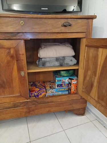 Maison 1 Chambre      Boasting a private entrance, this holiday home includes 1 living room, 1 separate bedroom and 1 bathroom with a shower and a hairdryer. Guests can make meals in the kitchen that has a stovetop, a refrigerator, kitchenware and an oven. The holiday home has tiled floors, a seating area with a flat-screen TV, a washing machine, a tea and coffee maker, as well as a dining area. The unit has 2 beds. | ||