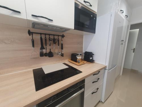 Situé en plein centre de Antibes, l’hébergement Le Versailles appartement 4 prs cosy carre d or possède une terrasse offrant une vue sur la ville. Cet appartement comprend un balcon et une connexion Wi-Fi gratuite. Cet appartement avec climatisation se compose de 1 chambre, d'un salon, d'une cuisine entièrement équipée avec un réfrigérateur et une machine à café, ainsi que de 1 salle de bains avec une douche et un sèche-cheveux. Des serviettes et du linge de lit sont à votre disposition. Vous séjournerez à respectivement 400 mètres et 11 km de ces lieux d’intérêt : Plage du Ponteil et Palais des festivals de Cannes. L'aéroport le plus proche (Aéroport de Nice-Côte d'Azur) est à 15 km. |