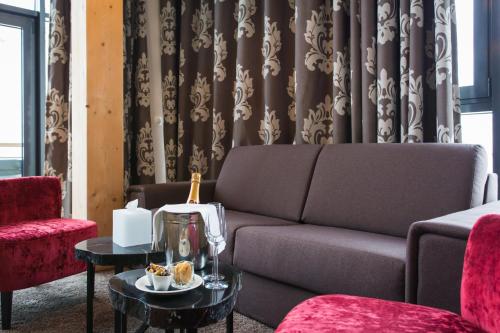 Situé à Arc 2000, à 100 mètres de la remontée mécanique des Lanchettes, l'Hôtel Taj-I Mah by Les Etincelles est un établissement 5 étoiles doté d'un bar, de deux restaurants avec un chef renommé, d'un accès skis aux pieds et d'une connexion Wi-Fi gratuite dans l'ensemble des locaux. Chaque chambre climatisée dispose d'une télévision par satellite à écran plat. Leur salle de bains privative est pourvue de peignoirs, de chaussons et d'articles de toilette gratuits. Certaines comportent un coin salon et offrent une vue sur la montagne ou la ville. Vous pourrez vous détendre dans la piscine intérieure, au sauna et dans le jacuzzi. Des massages sont prodigués sur demande. Un service de location d'équipements de ski est disponible. Vous pourrez pratiquer diverses activités dans les environs, comme le ski et la randonnée. |