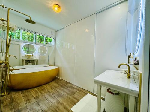 L’hébergement Argi Alde - côté lumière se trouve à Arcangues, à respectivement 14 km, 15 km et 28 km de ces lieux d’intérêt : Église Saint-Jean-Baptiste, Gare de Saint-Jean-de-Luz et Gare d'Hendaye. Il comprend un patio et une connexion Wi-Fi gratuite. Cet hébergement est installé à 1,3 km de : Gare de Biarritz La Négresse. Il propose un jardin et un parking privé gratuit. Disposant d’une terrasse et offrant une vue sur le jardin, cet appartement comprend 2 chambres, un salon, une télévision à écran plat par câble, une cuisine équipée, ainsi que 2 salles de bains avec une douche et une baignoire. Des serviettes et du linge de lit sont disponibles. En plus de profiter d’un service de location de vélos et d’un service de location de voitures sur place, vous pourrez pratiquer la randonnée dans les environs. Vous séjournerez à respectivement 28 km et 40 km de ces lieux d’intérêt : Centre de Congrès - Foire-Expo Ficoba et Port de Pasaia. L'aéroport le plus proche (Aéroport de Biarritz-Pays basque) est à 3 km. |