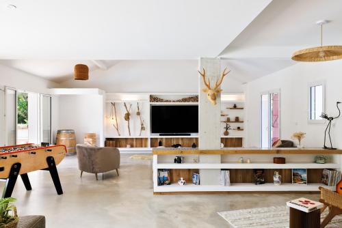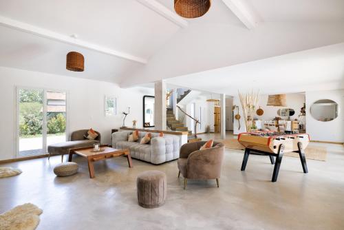 L’hébergement Villa Alba - Villa au charme bohème se situe à Arcangues, à seulement 6,8 km de ce lieu d’intérêt : Gare de Biarritz La Négresse. Il possède une piscine extérieure, un jardin, une terrasse et une connexion Wi-Fi gratuite. Cet hébergement met à votre disposition un balcon et un parking privé gratuit. Cette maison de vacances se compose de 4 chambres, d'un salon, d'une cuisine entièrement équipée avec un réfrigérateur et une machine à café, ainsi que de 4 salles de bains avec une douche et des articles de toilette gratuits. Des serviettes et du linge de lit sont mis à votre disposition. Vous séjournerez à respectivement 20 km et 20 km de ces lieux d’intérêt : Gare de Saint-Jean-de-Luz et Église Saint-Jean-Baptiste. L'aéroport le plus proche (Aéroport de Biarritz-Pays basque) est à 7 km. |