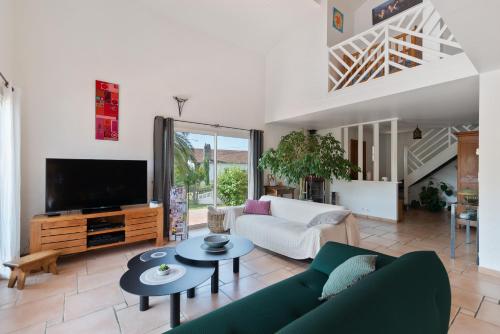 Situé à Arcangues, l’hébergement Villa d'Arcangues offre une vue sur le jardin. Il propose une terrasse et une connexion Wi-Fi gratuite. Cette villa comprend également une piscine privée. Cette villa se compose de 2 chambres, d’une cuisine et de 2 salles de bains. Une télévision à écran plat est disponible. Vous séjournerez à respectivement 6,7 km et 20 km de ces lieux d’intérêt : Gare de Biarritz La Négresse et Église Saint-Jean-Baptiste. L'aéroport le plus proche (Aéroport de Biarritz-Pays basque) est à 8 km. |