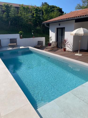 L’hébergement Villa Elucci se situe à environ 3,3 km de ce lieu d’intérêt : Gare de Biarritz La Négresse. Il dispose d’une piscine extérieure et d’une connexion Wi-Fi gratuite. Cette villa comprend une piscine privée, un jardin et un parking privé gratuit. Disposant d’une terrasse et offrant une vue sur la piscine, cette villa comprend 4 chambres, un salon, une télévision à écran plat par câble, une cuisine équipée, ainsi que 4 salles de bains avec une douche et une baignoire. Des serviettes et du linge de lit sont mis à votre disposition. Vous séjournerez à respectivement 17 km et 17 km de ces lieux d’intérêt : Gare de Saint-Jean-de-Luz et Église Saint-Jean-Baptiste. L'aéroport le plus proche (Aéroport de Biarritz-Pays basque) est à 2 km. |