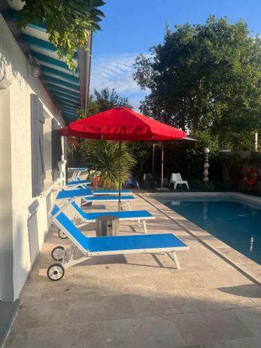 Situé à Arès et offrant une vue sur le jardin, l’établissement ARES - Maison le Paradis comprend une piscine extérieure ouverte en saison, un jardin, un salon commun et un casino. Une connexion Wi-Fi gratuite est à votre disposition dans l’ensemble de ses locaux. L’établissement propose des hébergements avec vue sur la piscine, une terrasse, un coin salon et une télévision à écran plat par satellite. Vous bénéficierez d’une cuisine entièrement équipée avec un réfrigérateur et un lave-vaisselle, ainsi que d'une salle de bains privative avec une douche et un sèche-cheveux. Un four, un micro-ondes et une plaque de cuisson sont également à votre disposition, de même qu’une machine à café et une bouilloire. Si vous souhaitez découvrir la région, vous aurez la possibilité de pratiquer la randonnée et la pêche dans les environs. Vous séjournerez à respectivement 1,4 km et 36 km de ces lieux d’intérêt : Plage de La Conche Saint-Brice et Parc d’attractions La Coccinelle. L'aéroport le plus proche (Aéroport de Bordeaux-Mérignac) est à 33 km. |