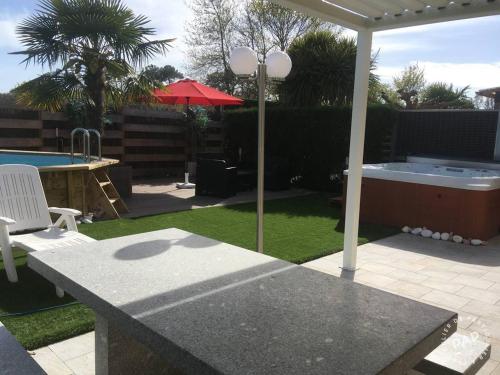 Situé à Arès, l’hébergement Villayodaares propose une piscine privée. Cet hébergement offre une vue sur le jardin et possède une terrasse, un spa et centre de bien-être ainsi qu’une connexion Wi-Fi gratuite dans l’ensemble de ses locaux. Cette villa comprend 1 chambre, une télévision à écran plat, une cuisine équipée, un lave-linge, ainsi que 2 salles de bains avec un bain à remous. Vous séjournerez à respectivement 800 mètres et 36 km de ces lieux d’intérêt : Plage d'Arès et Parc d’attractions La Coccinelle. L'aéroport le plus proche (Aéroport de Bordeaux-Mérignac) est à 33 km. |