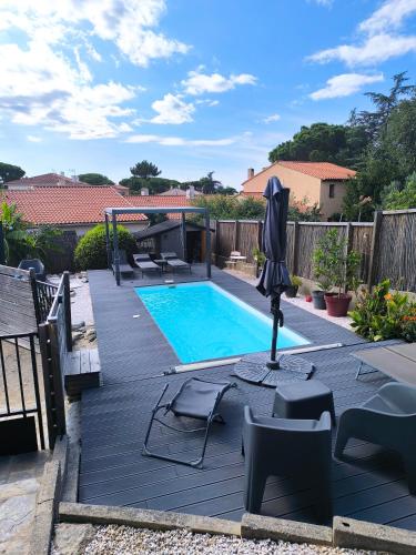 | T2 jusqu'à 4 personnes en rez-de-jardin de maison, avec piscine, draps et serviettes de toilette fournis |